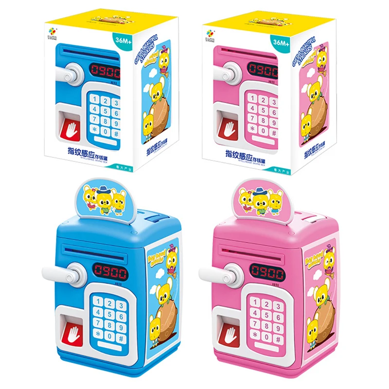 New Pretend Save money Game Toys Fingerprint Induction Open Latched Bank Simulation Safe ATM Bank T